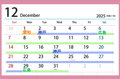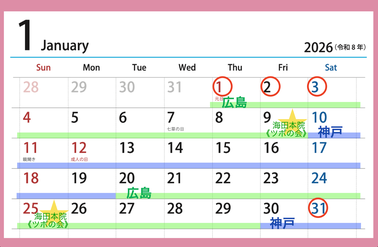広島/海田本院:1(木)-9(金) / 20(火)-29(木)