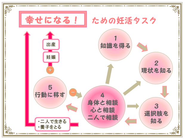 下記の妊活タスクでは、4身体と相談・心と相談・二人で相談 に当たります。